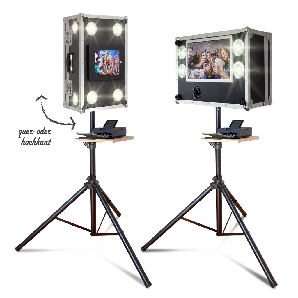 We offer rental photo booths with a rebooking guarantee, including DSLR camera, unlimited flat-rate printing, shipping anywhere in Germany, USB stick, props, and more… An unbeatable offer!